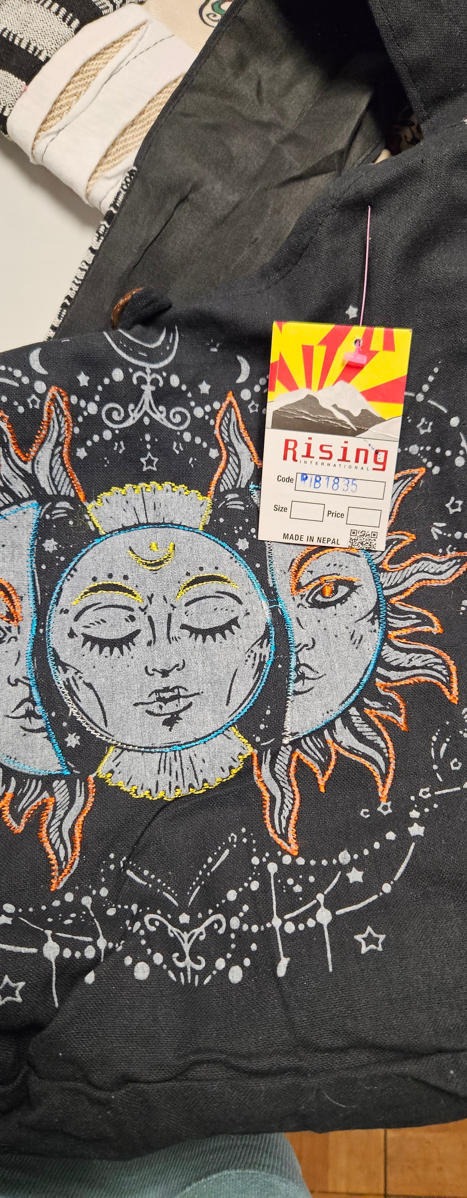 Add a touch of bohemian style to any outfit with this beautiful Cotton Ghary Triple Face Sun Moon Bag