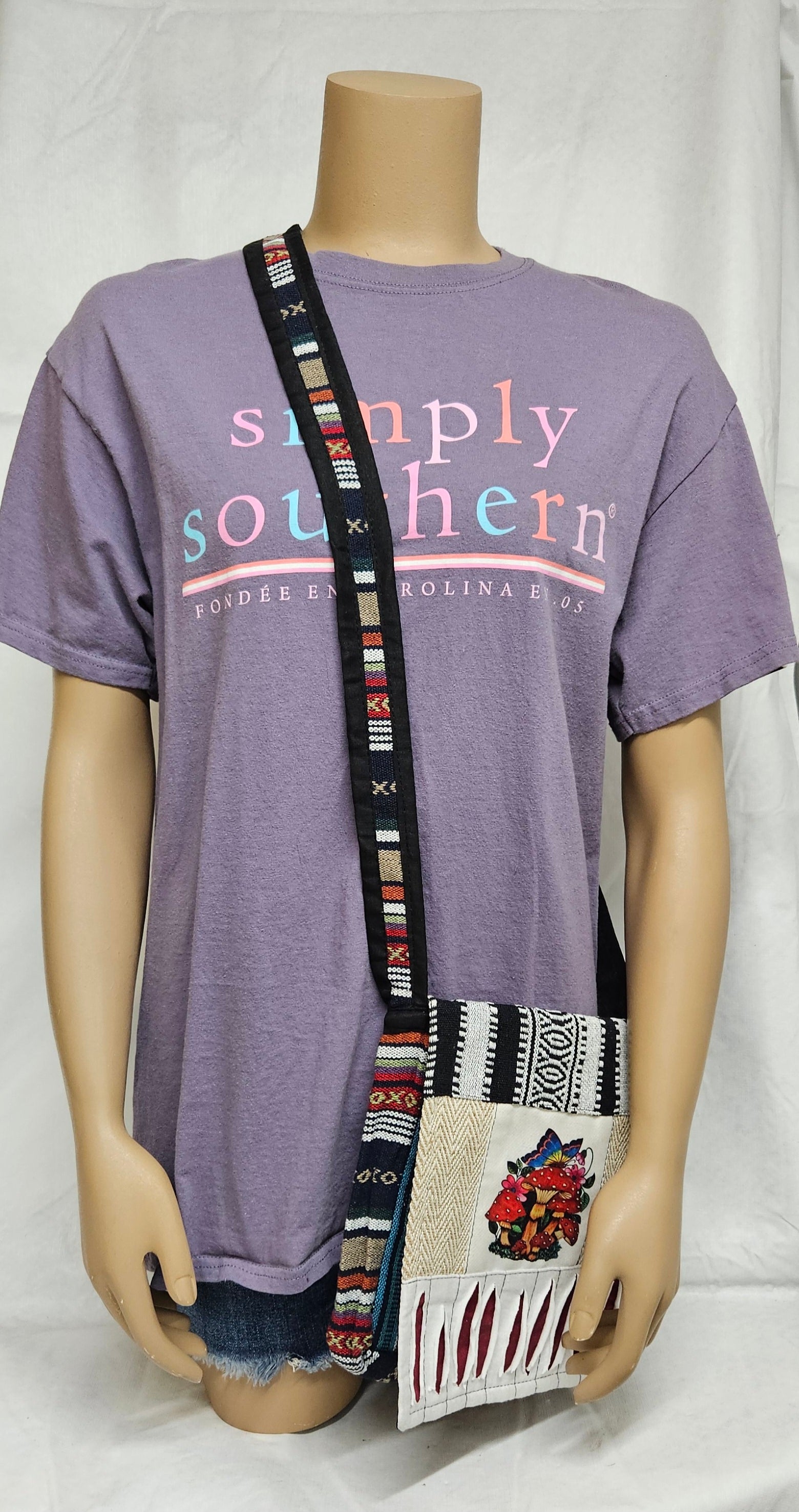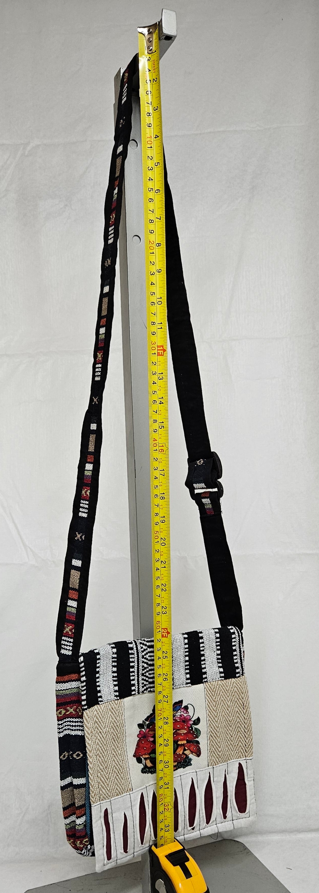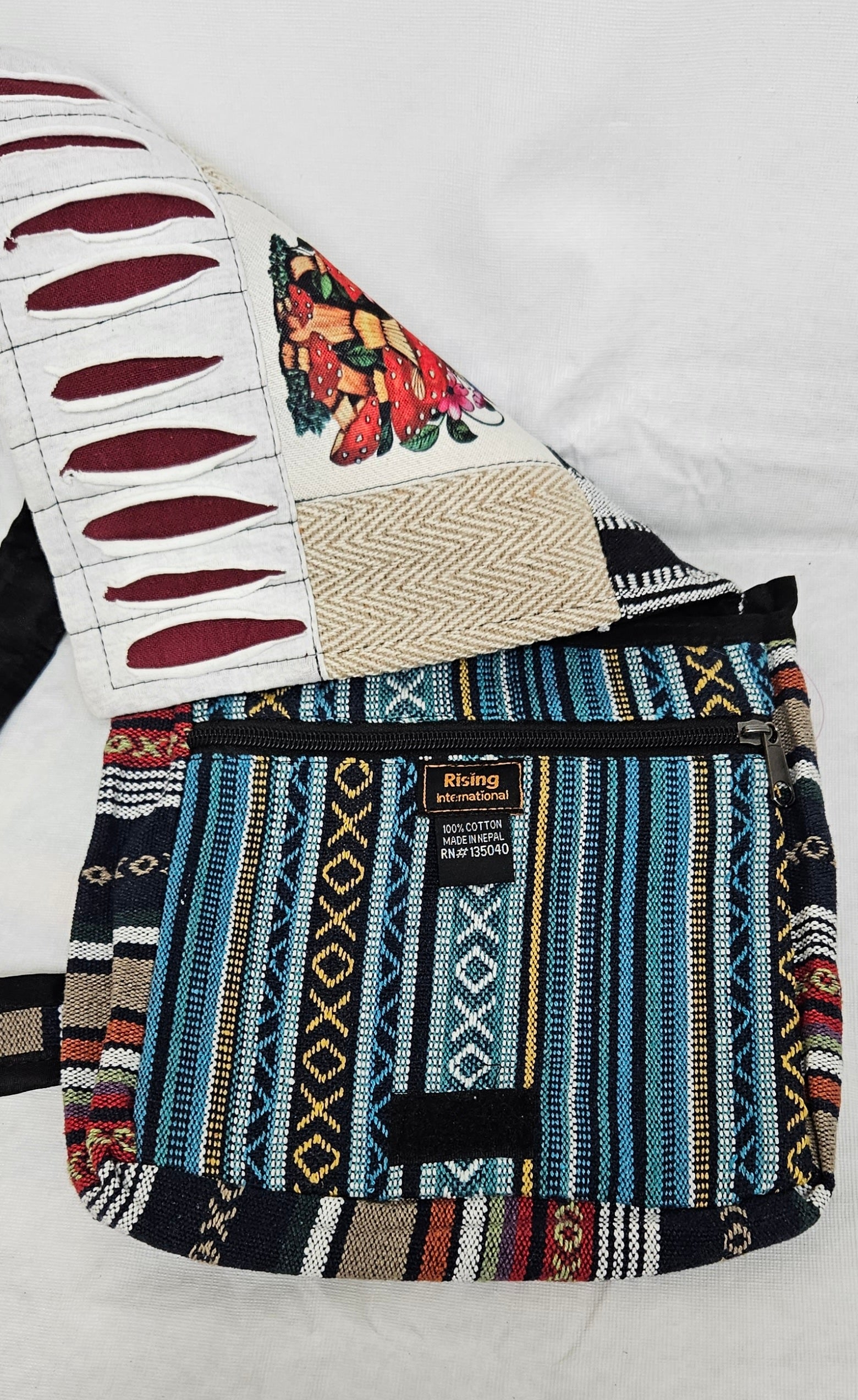 Cotton Hemp Razro patchwork King Mushroom Mini Bag with Adjustable Strap