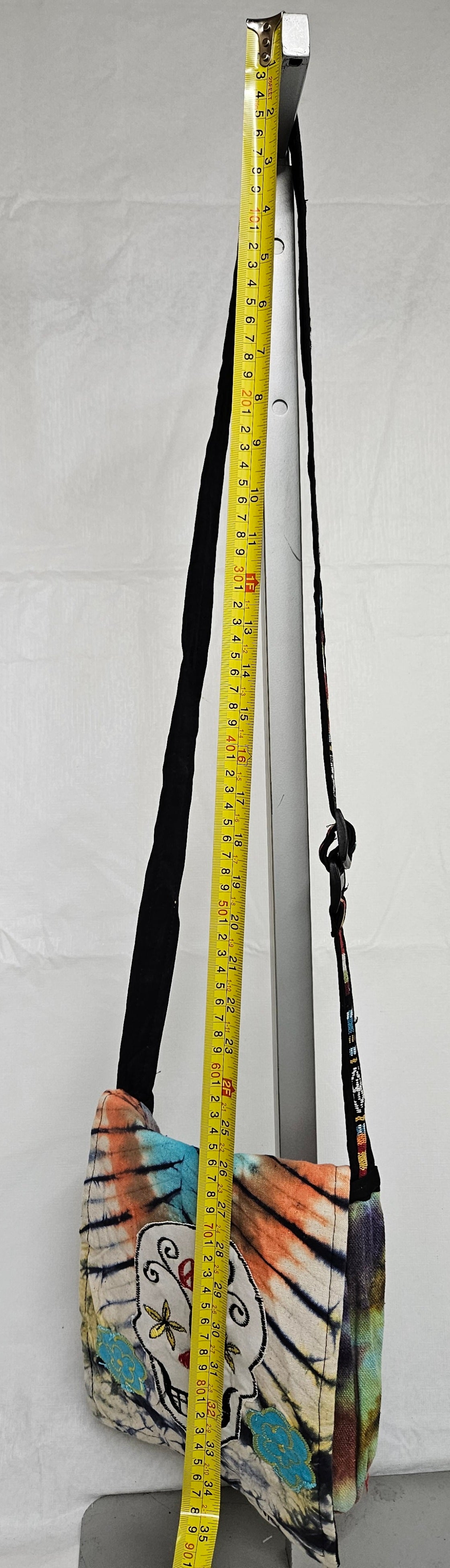Cotton Razor Cut Flower Embroidery Print Hippie hobo crossbody sling passport mini file Skull Bag