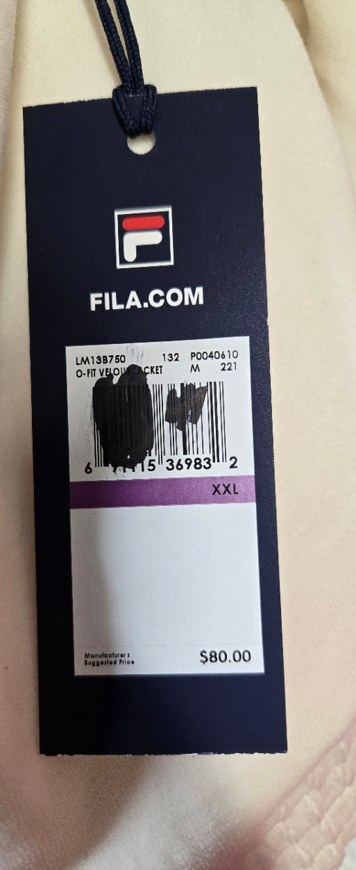 Fila Creamy White Velour Track Jacket – Retro Sporty Style, 2X, Ribbed Cuffs