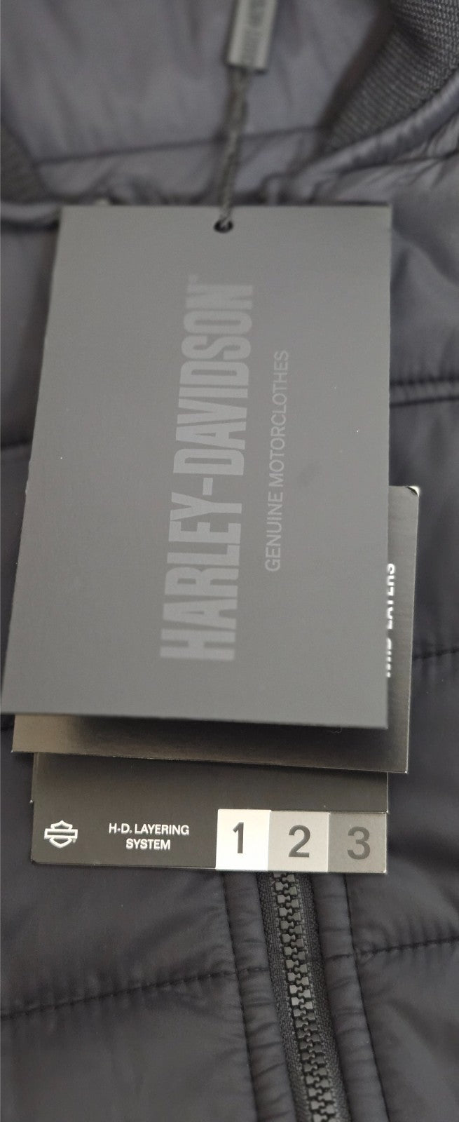 The Harley-Davidson Black Puffer Jacket is a stylish and practical clothing item that is a must-have for any motorcycle enthusiast. Made by the iconic brand Harley-Davidson, this jacket combines American ruggedness with modern design. Perfect for colder weather, this puffer jacket provides protection and warmth, while also showcasing your love for motorcycles and the brand. Whether you're out riding or simply want to show off your style, the Harley-Davidson Black Puffer Jacket is a versatile and functional addition to your wardrobe.
