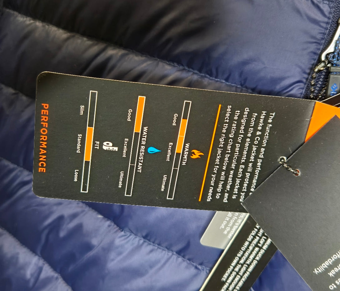 Hawke & Co Men's Navy XL Packable Down Jacket – Lightweight, Windproof, Water-Resistant