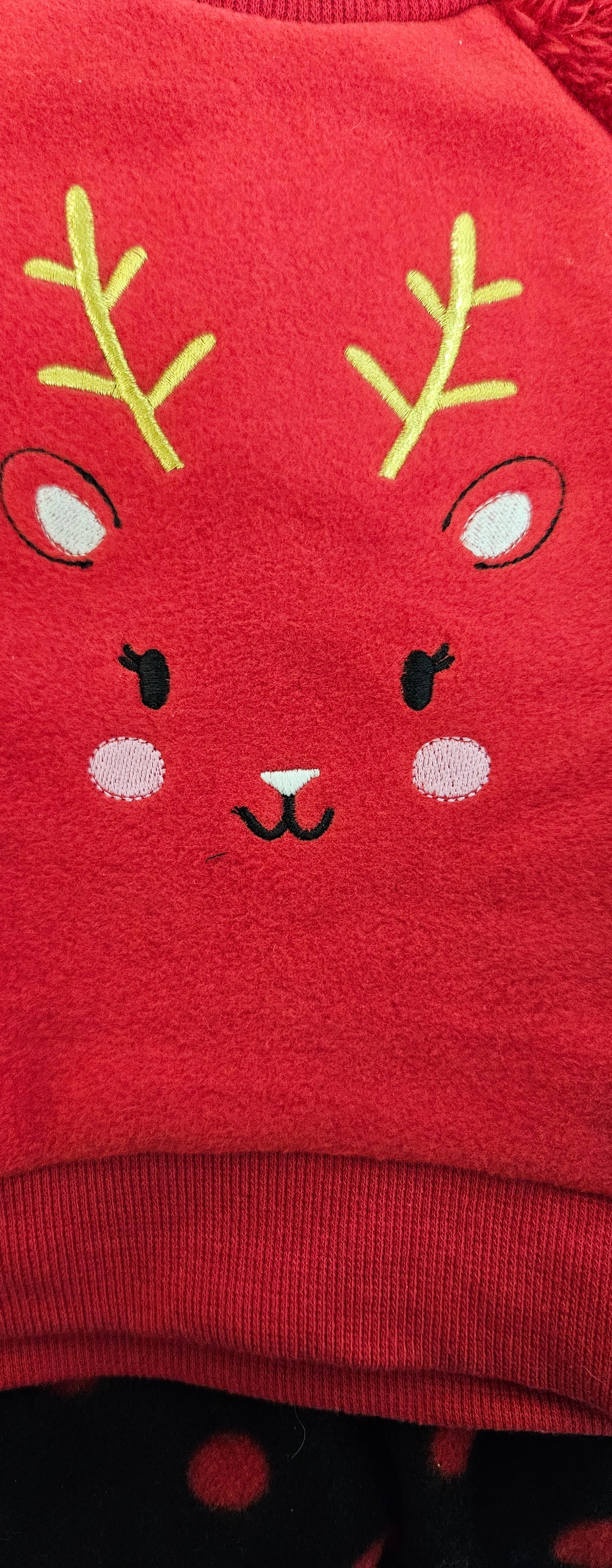 Red Shirt and Black Polk-a-Dot Pants - 3 Buttons on the Back of the Shirt