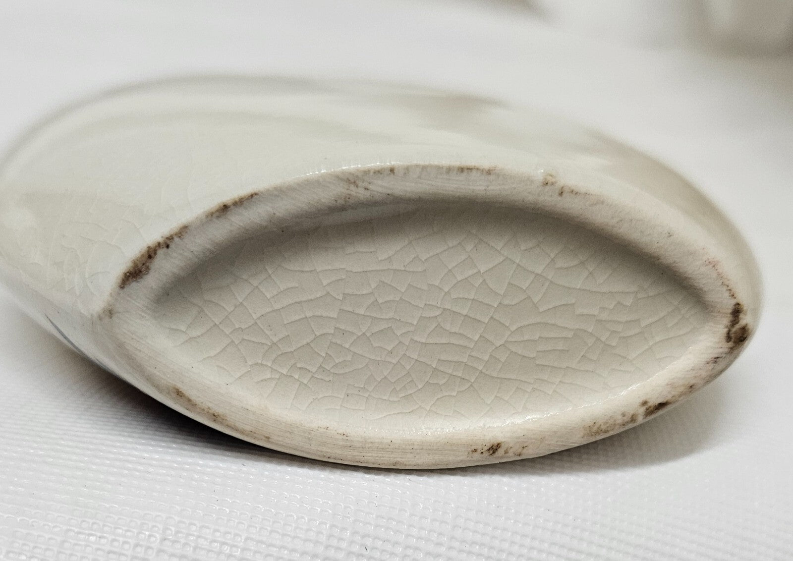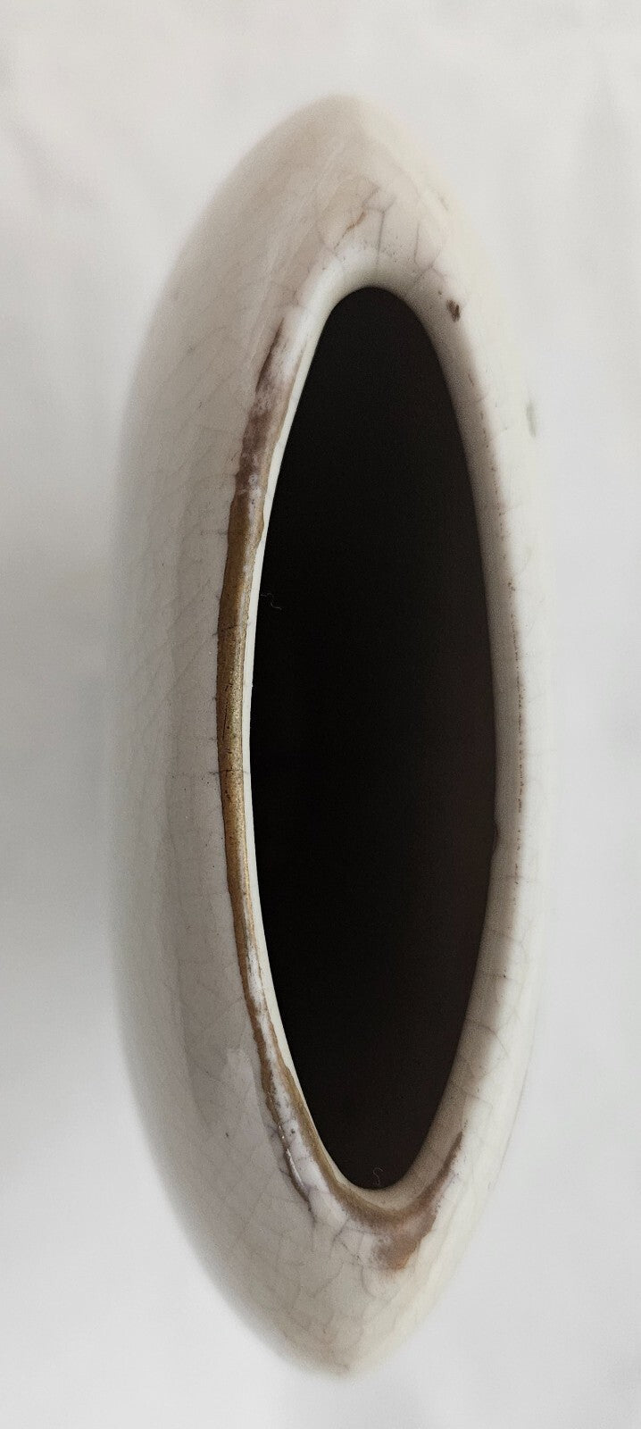 This vintage Peacocks Flowers Oval Vase is a collectible piece originating from Japan, showcasing intricate Japanese culture and craftsmanship. The vase features elegant gold trim and a crazed glazed porcelain finish, adding to its vintage charm. With measurements of 4x4 inches, this unique piece would make a beautiful addition to any collection or as a statement decor item in a home. The delicate design and Japanese influence make this vase a special and timeless treasure for any admirer of Asian cultures and ethnicities.