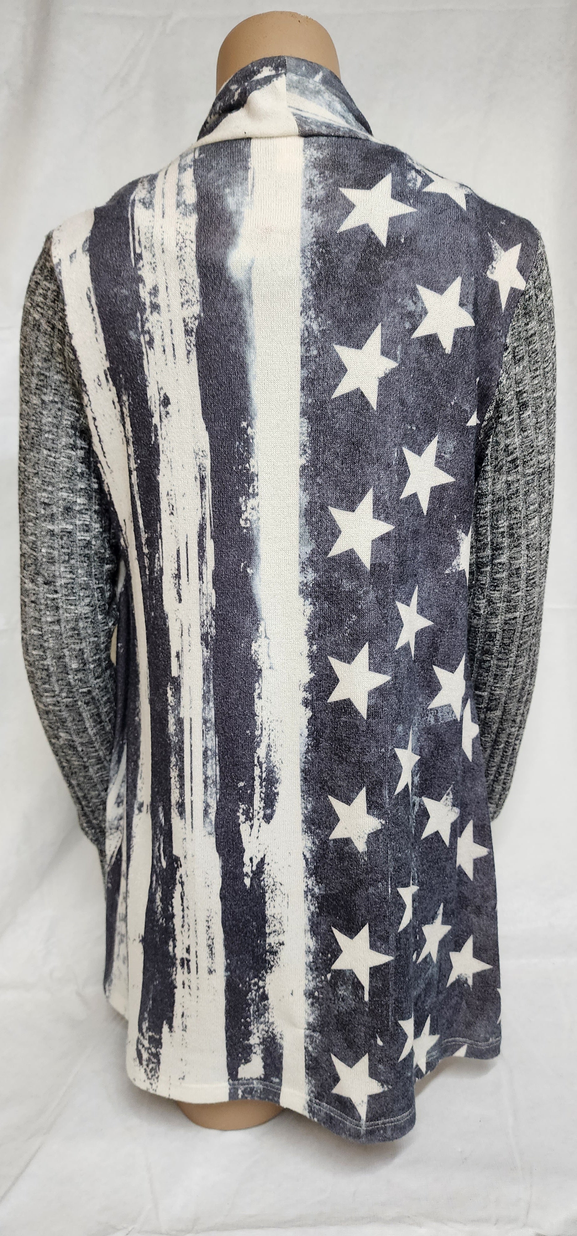 VOCAL Stars and Stripes Crunch Drape Front Sweater Cardigan